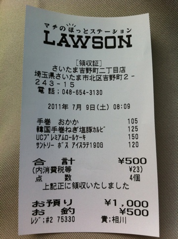 iPhoneでPhoto, 写真/Photo, 新・日記のある暮らし ローソン吉野町二丁目店のパーキングで朝食中 by lawangkul • 2011年7月9日 • 0 Comments おにぎり手巻おかか、おにぎり韓国手巻ねぎ塩豚カルビ、プレミアムロールケーキ、サントリーボスアイスラテ が終わると、トラックリンク訪問します。 More from my blog予約のための予約受付専用の整理券:iPhone5ワイアードと史上最強のSNAPQUEEN特集の雑誌東京湾岸警察署:時間調整で「ネットの罠」特集熟読中抹茶ラテ、ドトールコーヒーの御嶽山店:大田区ブルーベリーチーズケーキとカフェラテ:BANGRAKジューシー唐揚げ弁当がランチ:千代田区歩き続け中・・・大田区の鵜の木下車クッキー&グリーンティーチョコレート、二個買い →ラワンクルのタイと日本暮らしのサイクル(2010-2019)を見る。