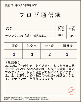 新・日記のある暮らし ブログ通信簿の分析結果は、「一般生徒」タイプ by • 2008年8月10日 • 0 Comments goo以外のブログでも通信簿が発行できるようになったようで、さっそく自分のブログの通信簿の発行依頼してみました。最新の10件から分析されているようです。 ブログ通信簿サービス依頼してみる。 More from my blog稼働中のiPhone,iPad(日タイ編):2026/01/04愛用中のイヤホン&ヘッドホンのアイテム:2022/12/06稼働中の携帯電話(日タイ編):2023/07/222年ぶりに母国へ戻ります。初ZPAIR愛用中のイヤホンのアイテム:2022/11/24稼働中の携帯電話(日タイ編):2022/07/22愛用中のイヤホンのアイテム:2022/07/24Marshall製の完全ワイヤレスイヤホンはおすすめ