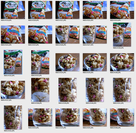 「フルーツグラノーラ 森のめぐみ」カルビー株式会社をブログに載せるための写真をさっそく撮ることにしましたが、こんなにシャッターを切手も良し悪しに関係なく、選ぶのはいつも1カット目です。