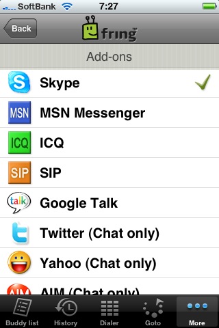 iPhone 3Gから「fring」を利用して、Skypeにログインするところまでは成功したが、「Buddy list」に表示されている相手で午前8時前でログインしている人はいなく・・でもログインは成功。